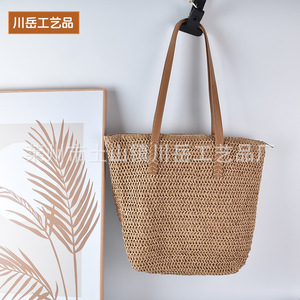 Ins機織一色編みバッグファッション百合シンプル大容量編みバッグ一色女性ビーチバッグ