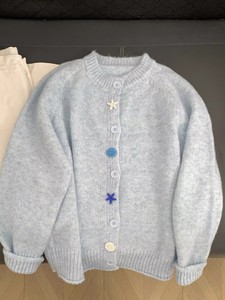 海の星の乳の青い優しい風の柔らかいモチモチの高級感のメリヤスのカーディガンの女性の2024早秋の新型の百合のセーター
