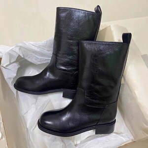 2024秋冬モデル黒百合ショートブーツ韓国中筒靴レトロ低ヒール騎士マーティンブーツ女性ブーツ