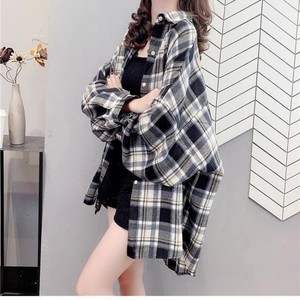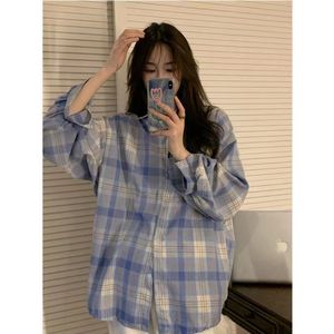 格子のシャツの女性の長袖の2025春の新型の韓国版BFの復古の外は百合の香港風の洋風のシャツのコートを着ます。