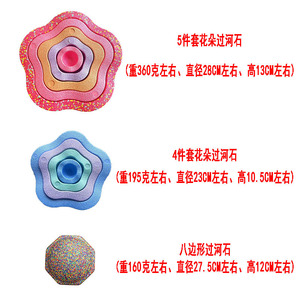 光る虹の川を渡る石の子供の感覚は花のバランスの足踏みの石を訓練します。