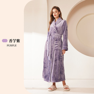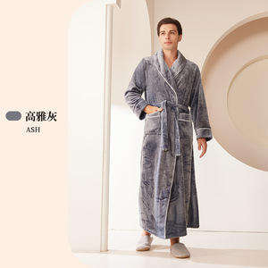 クロスボーダーの電気商は長いタイプの寝衣の女性の秋冬の珊瑚の毛の男性をプラスして冬のタイプのカップルのフランネルのパジャマのバスローブを厚くします。