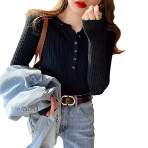 丸首ニットセーター レディース 秋 2025 新作 おしゃれ インナー ベースレイヤー デザイン性のあるニッチなセーター プルオーバー