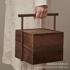 2025年木製中秋節ギフト包装箱 高級感二層式持ち運び用点心・月餅空箱 茶葉・酒類・食品箱