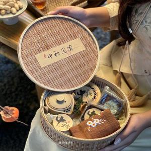 大竹木提篮空盒+月满中秋盖衬纸+中秋腰封+双流苏一个24.5*19.5*11.5cm