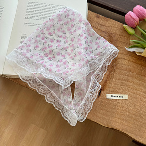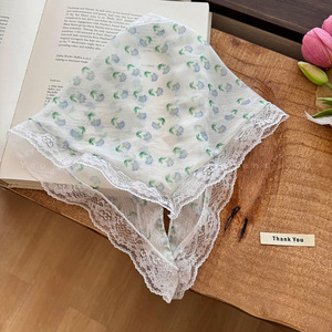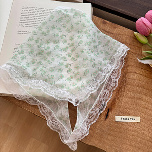 雰囲気感のある砕花のスカーフの女性の頭にはレースのスカーフがついています。