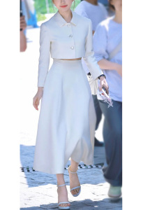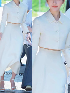 在庫あり 趙露思と徐燕と同じスタイルの高級ホワイトフレグランス風スーツドレス レディースショートジャケットとスカートのツーピースセット
