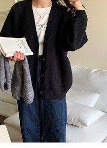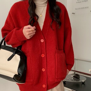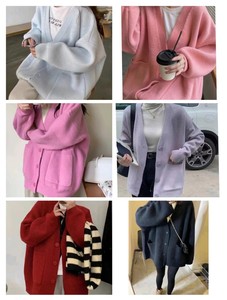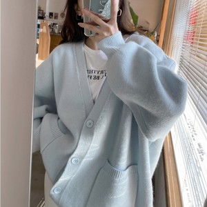 純色の乳は秋冬のセーターのカーディガンの女性の春の新型の怠惰な風がゆったりしているvネックの優しいニットの上着です。