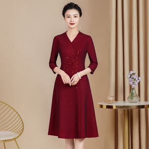 2024 秋ハイエンド母のウェディングドレス小さな若い高貴な義母の結婚式の宴会チャイナドレス