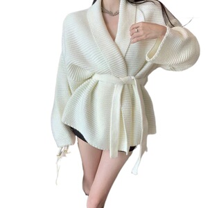 韓国風の秋冬の新しいスタイルの怠惰なウールの気質痩身暖かいレースアップセーターカーディガン女性用