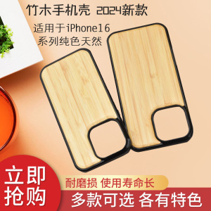 适用iPhone16pro天然实木竹制贴片手机壳苹果17包胶tpu木质保护套