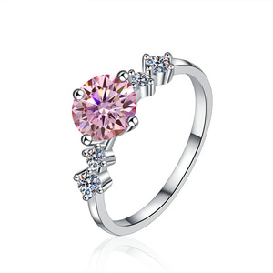 ヨーロッパとアメリカの女性向けの売れ筋カラフルなモアッサナイトリング、シンプルでクリエイティブな4本爪S925スターリングシルバーリング、カラフルな宝石のクロスボーダー卸売