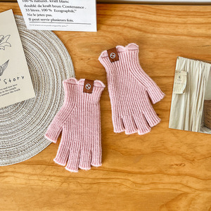 秋冬用暖かい手袋、ウールニット、女性用、指なし、タッチスクリーン対応、レース付き、防風、防寒、サイクリング用、指分け、防風、厚手