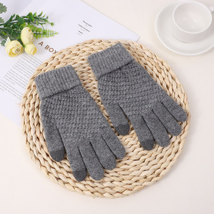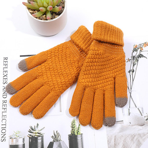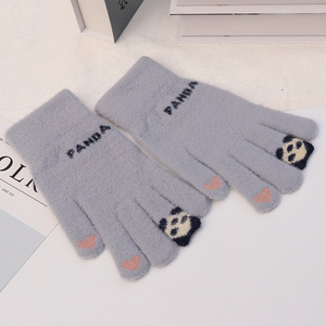 韓国風漫画風ニット手袋 女性用 タッチスクリーン対応 保温 防風 サイクリング手袋 秋冬用 可愛い裏起毛手袋