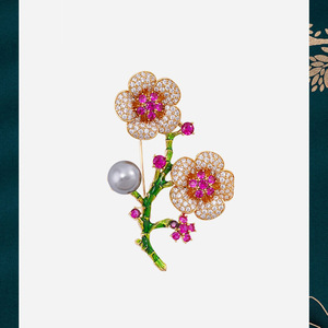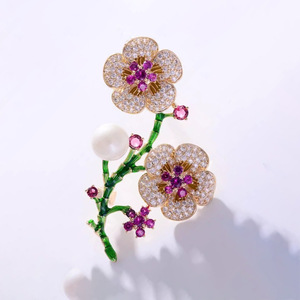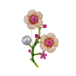 ヨーロッパとアメリカの気質の桃の花のブローチ、高級女性の絶妙な真珠のコサージュ、ニッチなデザインのフラワーピン、スーツのアクセサリー