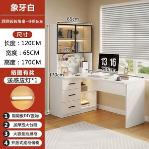 クリームホワイトコーナーデスク+DIY有孔ボード右キャビネット