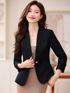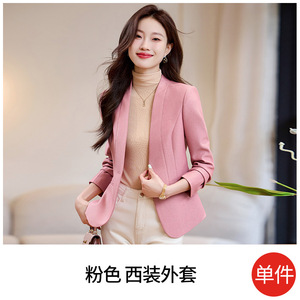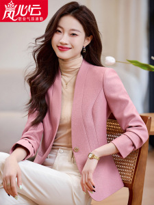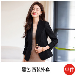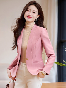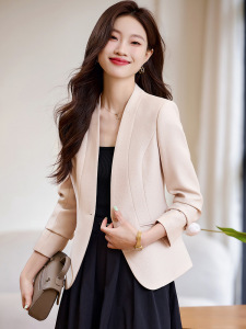 米杏色のスーツジャケット レディース 秋 2025年新作 高級感 スリムフィット 小柄さん向け ノーカラー スーツトップス 8907