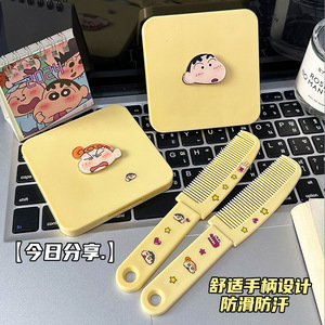 新しいクレヨンしんちゃんハンドルミラーコーム付きポータブル手持ち化粧鏡ガールハートミラーコーム一体型小型ミラー女性用