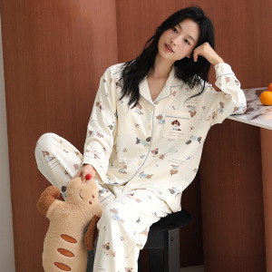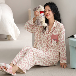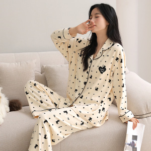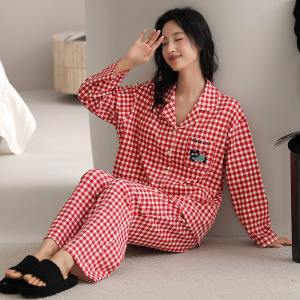 新しいパジャマの女性の秋の長袖の純綿の韓国版は胸当ての部屋の服のカーディガンの女性のスーツの爆発的な起爆金を持って外に着ることができます。