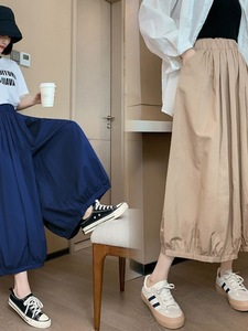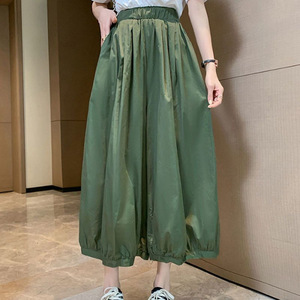 工装風提灯広脚ズボンの女性の大きいサイズのゆったりしたスカートのズボンの大きいサイズのズボンの9分のズボンの百合の広い足のカジュアルなズボン