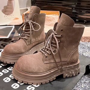 つや消し本革レースアップマーティンブーツ、ミュウレターフリップカラーラージイエローブーツ、厚底ツーウェアプラットフォームバイクブーツ(女性用)
