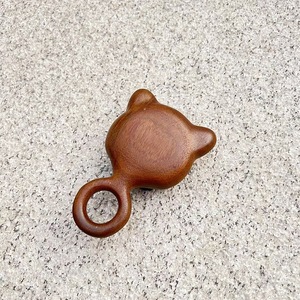 子猫は歯を挿して檀木のマッサージの櫛をします。