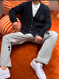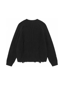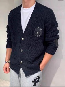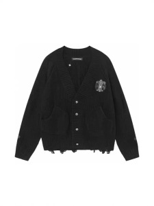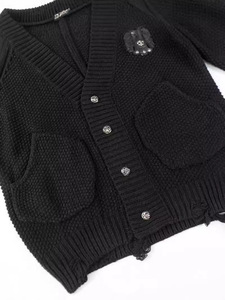 24SS CHの新型の皮を貼る十字架の穴を割ったニットのカーディガン