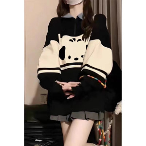 [56228-1] [華綿複合-オリジナルの作り方] 学院風の色合わせpolo襟半ファスナーの女性