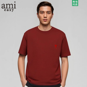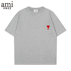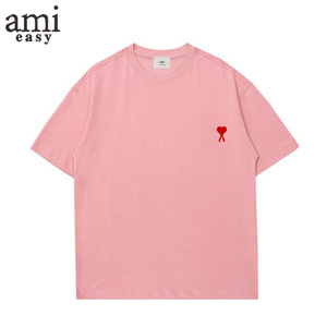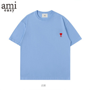 AMI&EASY 小さな愛の刺繍 Tシャツ 半袖 メンズ ゆったり オフショルダー 夏 トレンド ファッション 半袖 トップス Tシャツ