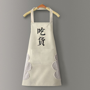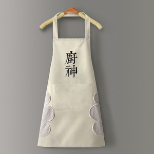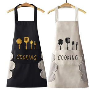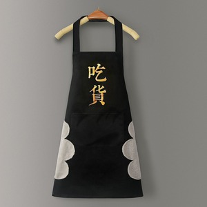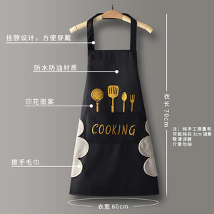 エプロンは家庭用キッチン北欧風韓国版防水白黒成人夫婦エプロン卸売り広告ロゴを拭くことができる