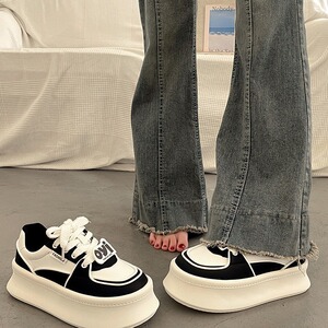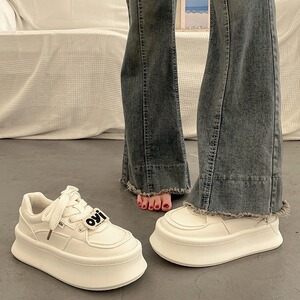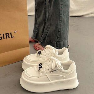 人気の厚底プラットフォーム白靴、女性用多用途ニッチスニーカー、2025年初春新作、身長を伸ばすカジュアルスポーツシューズ