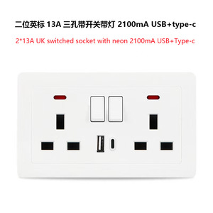 貿易 13A 英国標準 3 穴ソケット 香港三角パネル UK 英国タイプ 146 2 オープン 6 穴 USB+Type-C