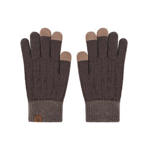 羊キャメルケース秋冬ニットタッチスクリーン手袋保温女性屋外ベルベットオフィス学習自転車防寒手袋