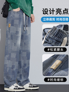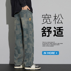 ファッションの流行は欧米のジーパンの男性の新型のよく売れている格子の星空の紋様の垂れ下がった感じがゆったりしています。