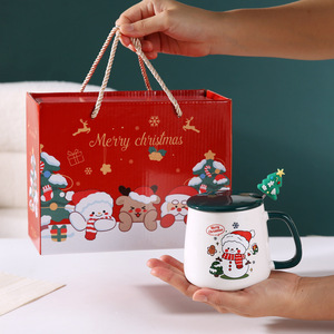 越境創意クリスマスプレゼントサンタクロースマグカップ蓋付きスプーン高顔値陶磁器カップ実用お土産