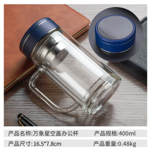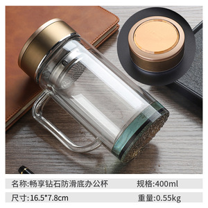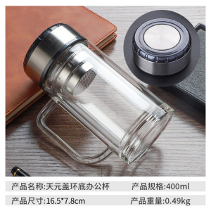 取っ手付きガラスカップ、蓋付き茶こしカップ、取っ手付き二重層茶こし付き高ホウケイ酸ガラスカップ