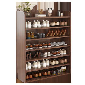 木造の下駄箱の家庭の入り口の新型の簡易靴棚の室内の多層の収納の神器の省の空間は壁の靴棚に寄りかかっています。