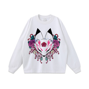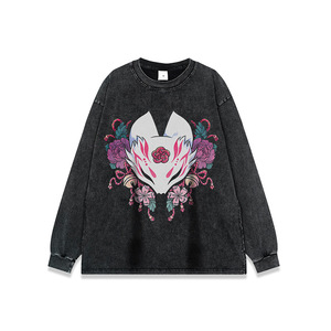 アメリカの街頭の国潮の長袖のtシャツの男女のゆったりしている潮流の悪業のプリントの重いポンドの純綿のゆったりしている古着の上着