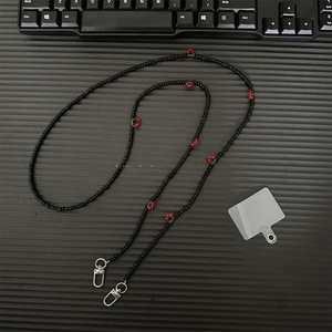 高級感細かい黒ビーズins純欲さくらんぼ携帯電話チェーン首カメラのストラップ