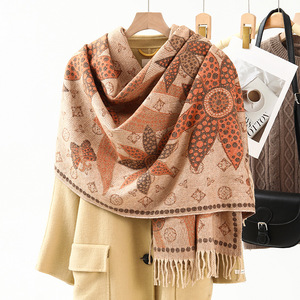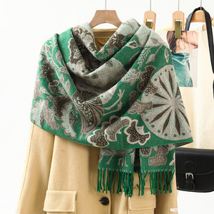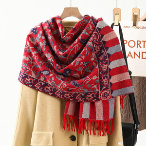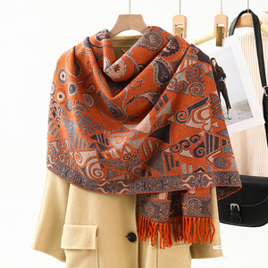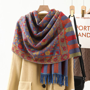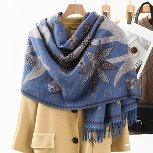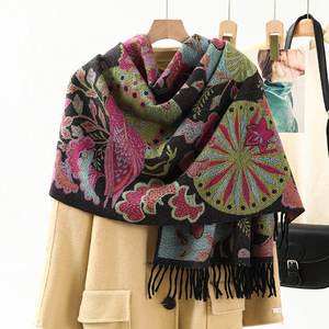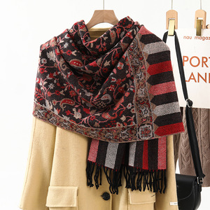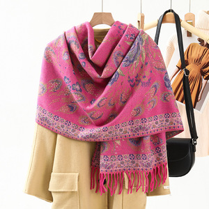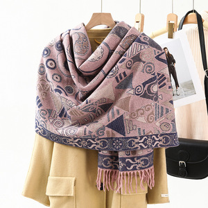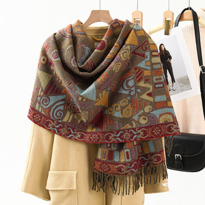 民族風のストールの外は装飾の保温を掛けてカシミヤのマフラーの女性の秋冬の新型のフリンジジャカードのマフラーの卸売りをまねます。