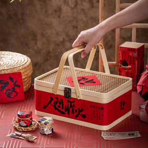 西花空ハンドバスケット + 喜び中秋節ステッカー + バーガンディ祝福タッセル 各約 24*17*10cm