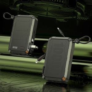 機甲ACプラグ充電宝携帯壁挿入三合一セルフケーブル2万ミリアンペア22.5W急速充電移動電源