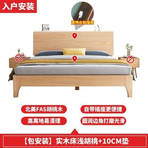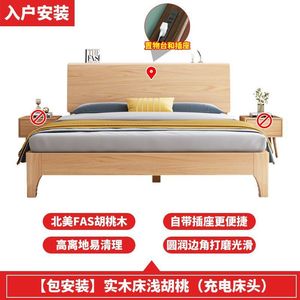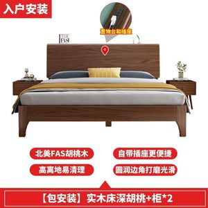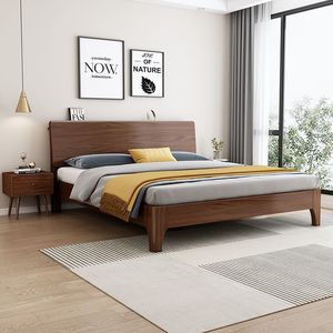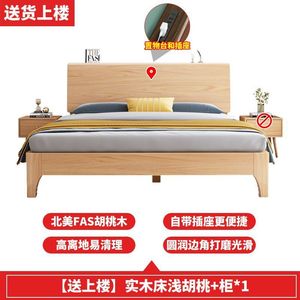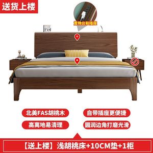 胡桃木実木ベッド現代シンプルダブル1.5主寝室ベッド1.2mシングルベッド1.8 mウェディングベッド収納ベッド