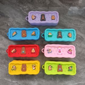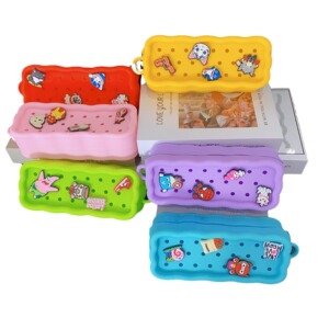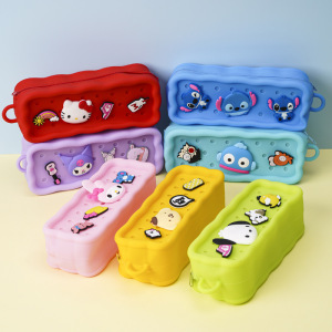 国境を越えた新しい筆袋シリコンバッグは、穴に斜めにまたがるPVCかわいいアニメDIYアクセサリー