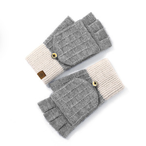 半指カバー手袋ニット冬女性かわいいベルベット屋外防寒保温事務学生露指手袋