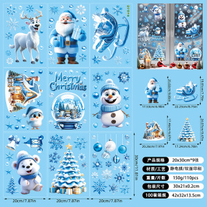 アマゾンの新商品3d白いサンタクロースのクリスマスの静電はデパートの店のショーウインドーの背景を貼って窓を飾ります。