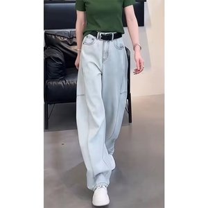 2025 春と秋の新ライトカラージーンズ女性のカジュアル小柄な痩身ワイドレッグパンツ女性のためのルーズストレートパンツ