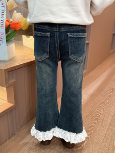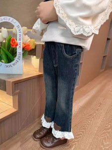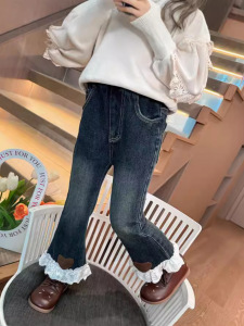 女の子用デニムパンツ2025新作子供春秋おしゃれパンツ女の子ゆったり秋服カジュアルパンツ微フレアパンツ