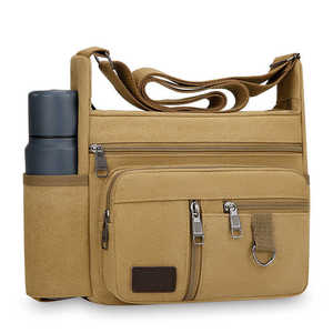 多目的キャンバスの男性は斜めに大容量の水筒を包んで、多層のカジュアルなショルダーバッグを包んで、韓国版を斜めに掛けます。