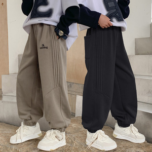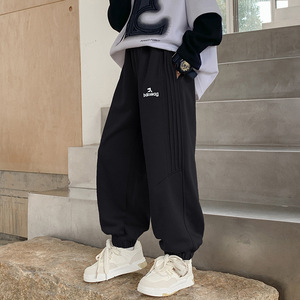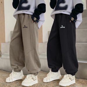 男の子の一体のベルベットのズボンの子供のゆったりした衛ズボン2025の新型の中で子供の秋冬の運動のズボン